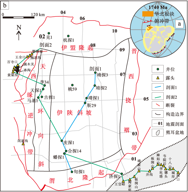 摘要: 鄂尔多斯盆地中—新元古代受裂谷活动影响,在汝阳、鄂尔多斯及燕辽地区分别沉积长城系熊耳群和常州沟组—大红峪组,尽管前人已建立统一地层框架,但受早期复杂裂谷作用影响,区域间地层对比及内部演化规律仍存争议。通过测—录井、区域二维地震反射剖面、岩性以及年龄测试数据,对比了鄂尔多斯地区长城系内部地层关系。结果表明,中元古代的裂陷活动在汝阳地区熊耳盆地于1800 Ma开始,鄂尔多斯地区裂陷活动在其西南缘华亭地区最早开始(结束时间>1759 Ma),时间与熊耳盆地大致相当,之后裂陷活动逐渐向东迁移; 熊耳群沉积之后,裂陷活动在鄂尔多斯地区停止进入拗陷期,沉积了汝阳群白草坪组,而熊耳盆地的裂陷活动与沉积中心向东北方向迁移; 至北大尖组沉积时期,燕辽裂谷形成,开始在燕辽地区沉积常州沟组,而鄂尔多斯地区长城系沉积范围达到最广; 之后,在鄂尔多斯地区存在短期的沉积间断,在地震反射剖面中可见不整合界面; 在崔庄组与洛峪口组沉积时期开始广泛海退,沉积范围减小。结合年代地层学与地层沉积中心的演化情况,认为华北板块的地层演化受裂陷活动影响,整体上存在由华北板块南缘向太行山地区—燕辽地区的迁移过程。